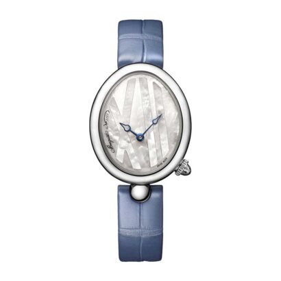 Tradition wristwatch in 18-carat white gold. Hand-wound movement with power reserve indicated on the dial and on the back. Off-centred silvered gold dial, hand-engraved on a rose engine. Sapphire caseback. Water-resistant to 3 bar ( 30 m ).